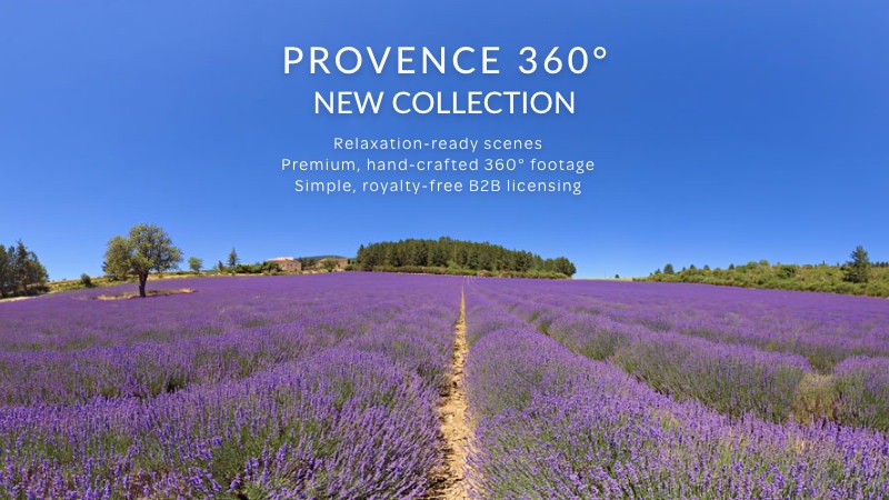 A fresh collection of lavender fields, quiet villages, forests, ochre landscapes and coastal viewpoints—relaxation-ready environments for VR wellness, healthcare and agencies.